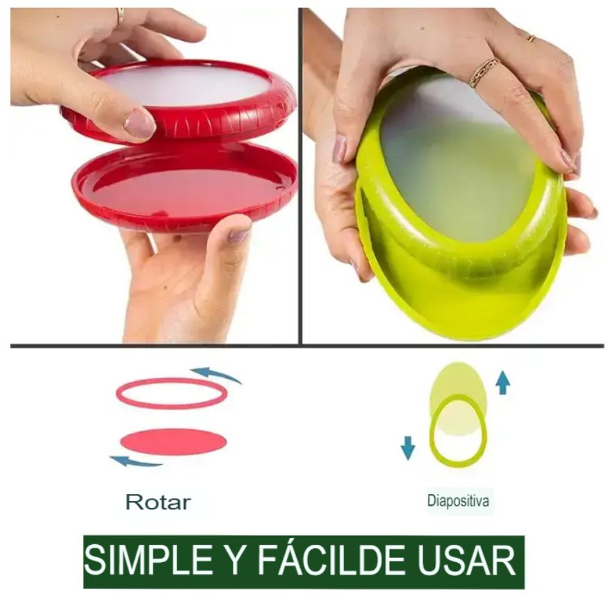 Solo coloca tu alimento dentro y listo: se mantiene fresco, sabroso y sin malos olores por mucho más tiempo. Empieza a conservar mejor, ahorrar dinero y cuidar el planeta en cada uso.