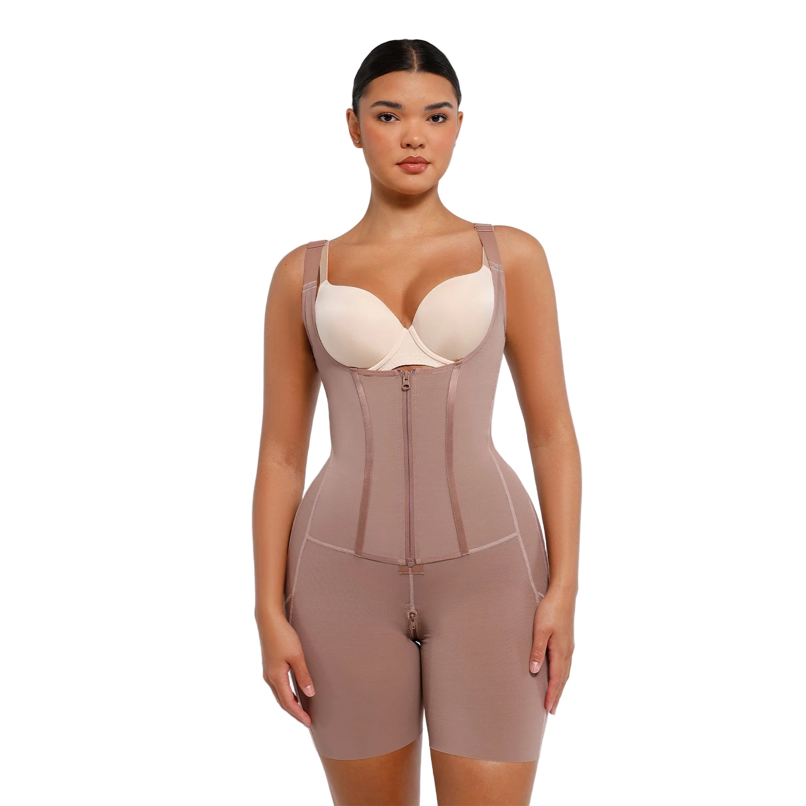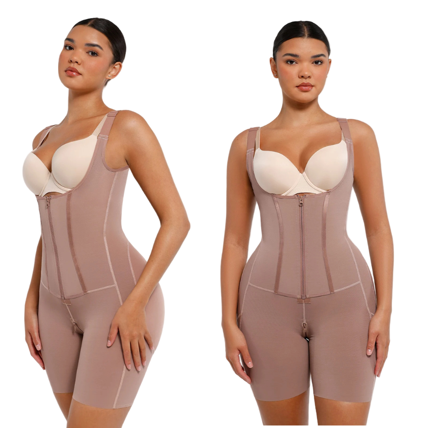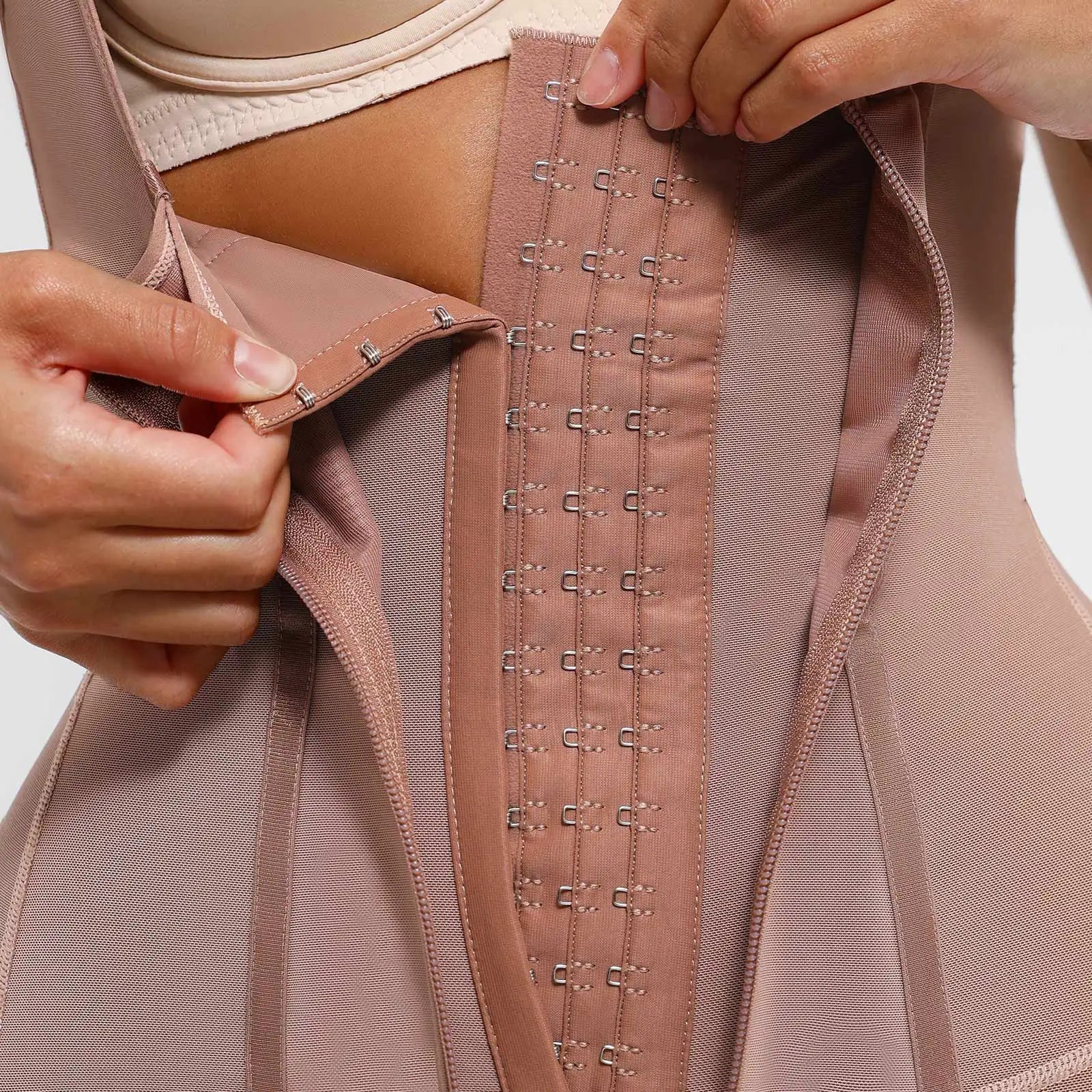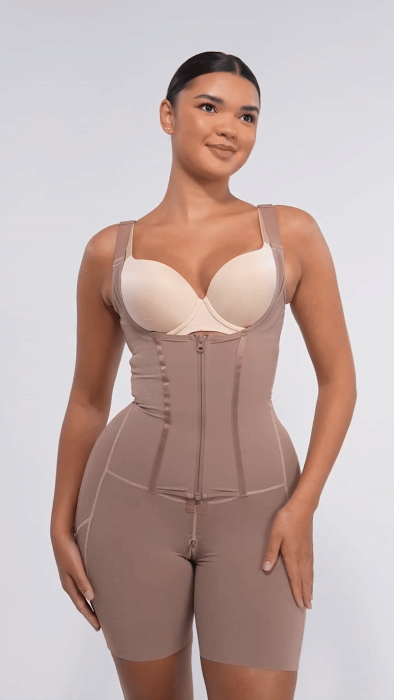 3️⃣ Cierra la cremallera frontal para compresión extra